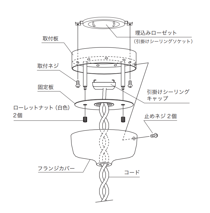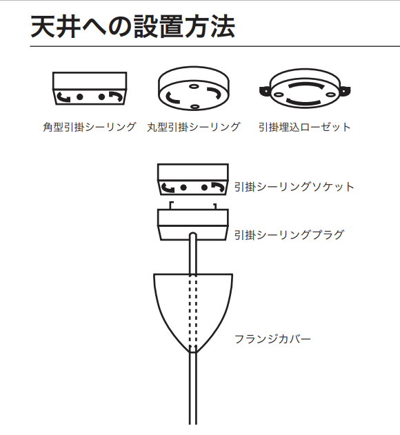 角型引掛シーリング、丸型引掛シーリング、引掛埋込ローゼットの3種類だと取扱説明書にありました。